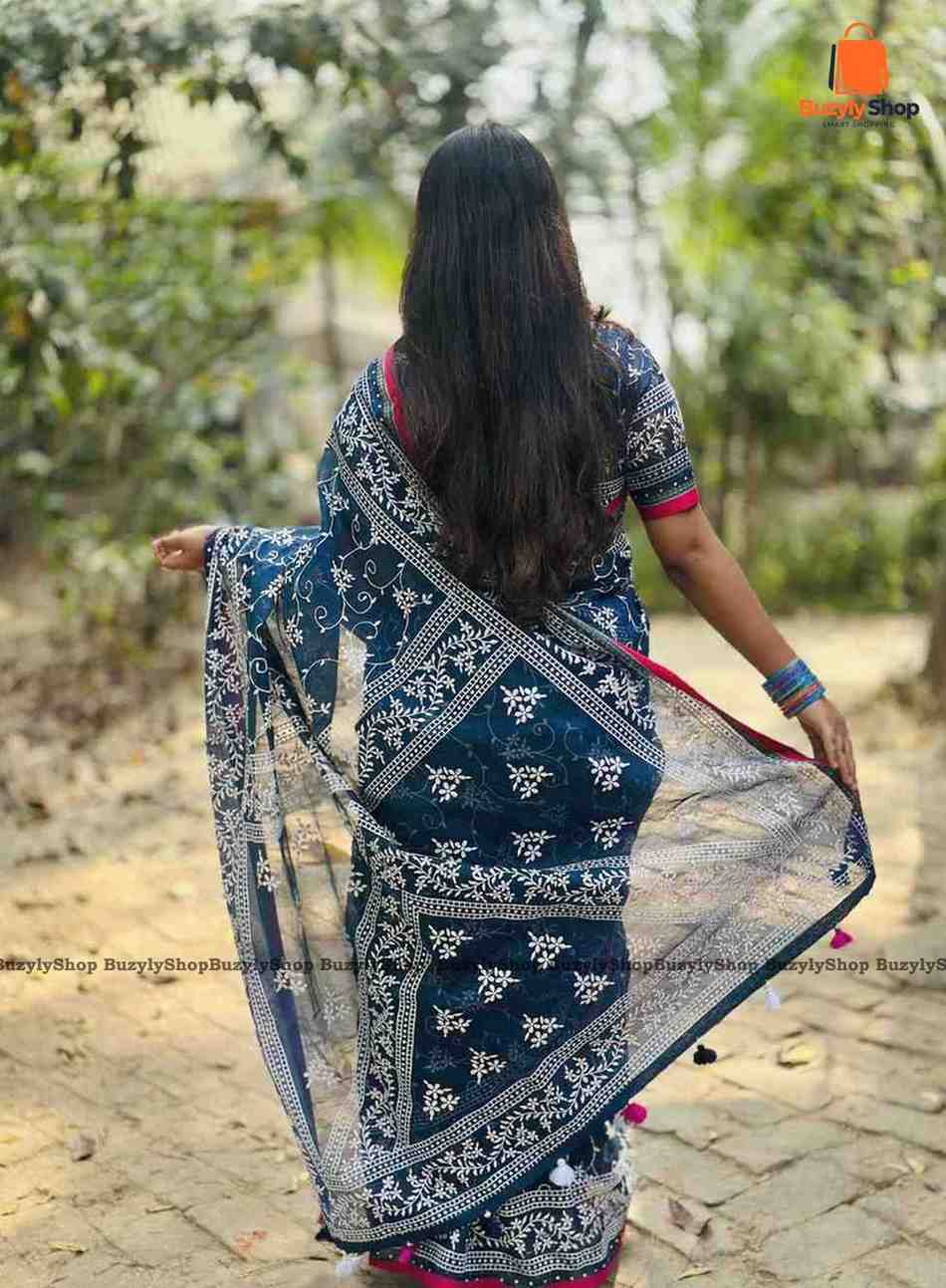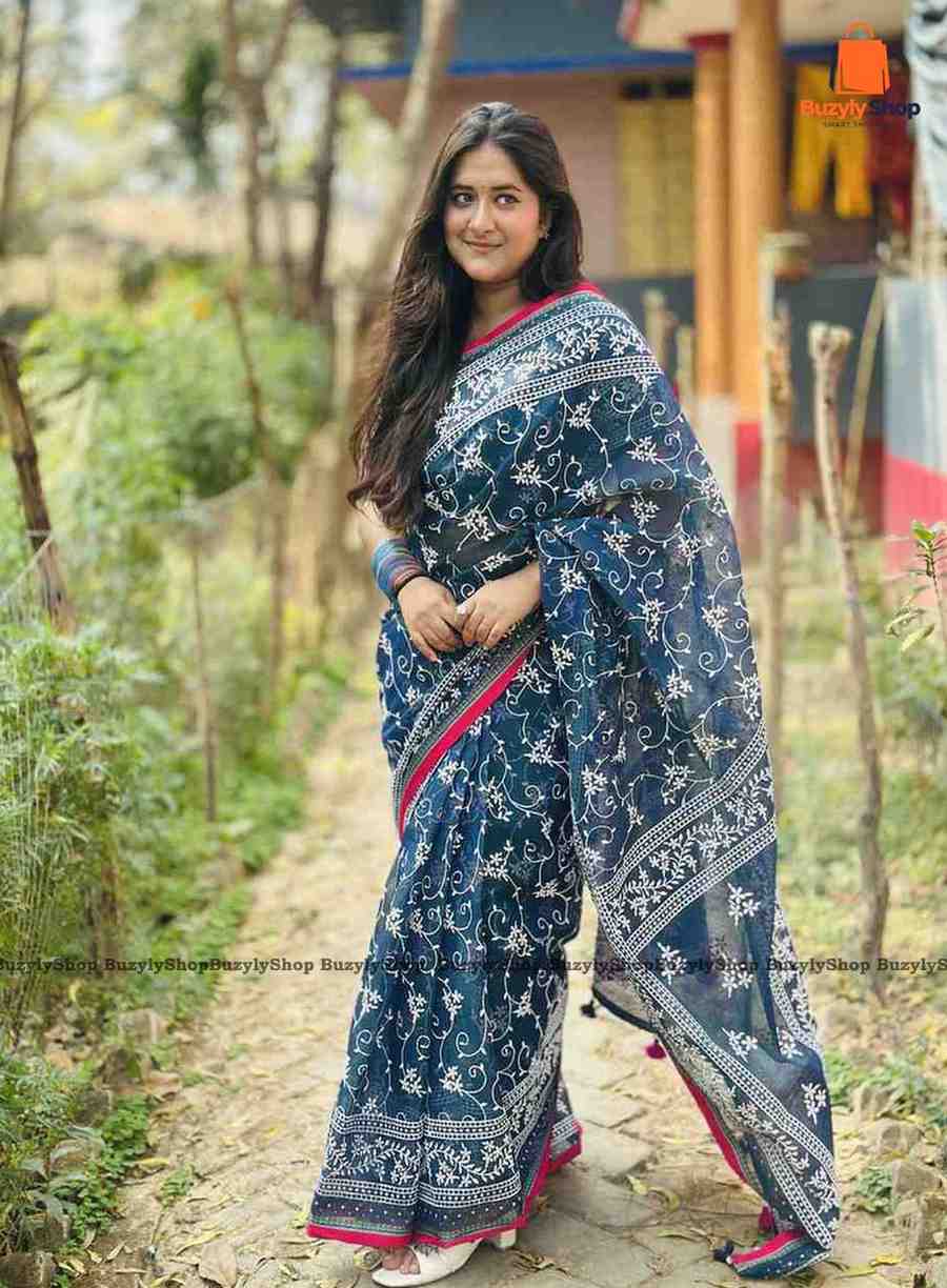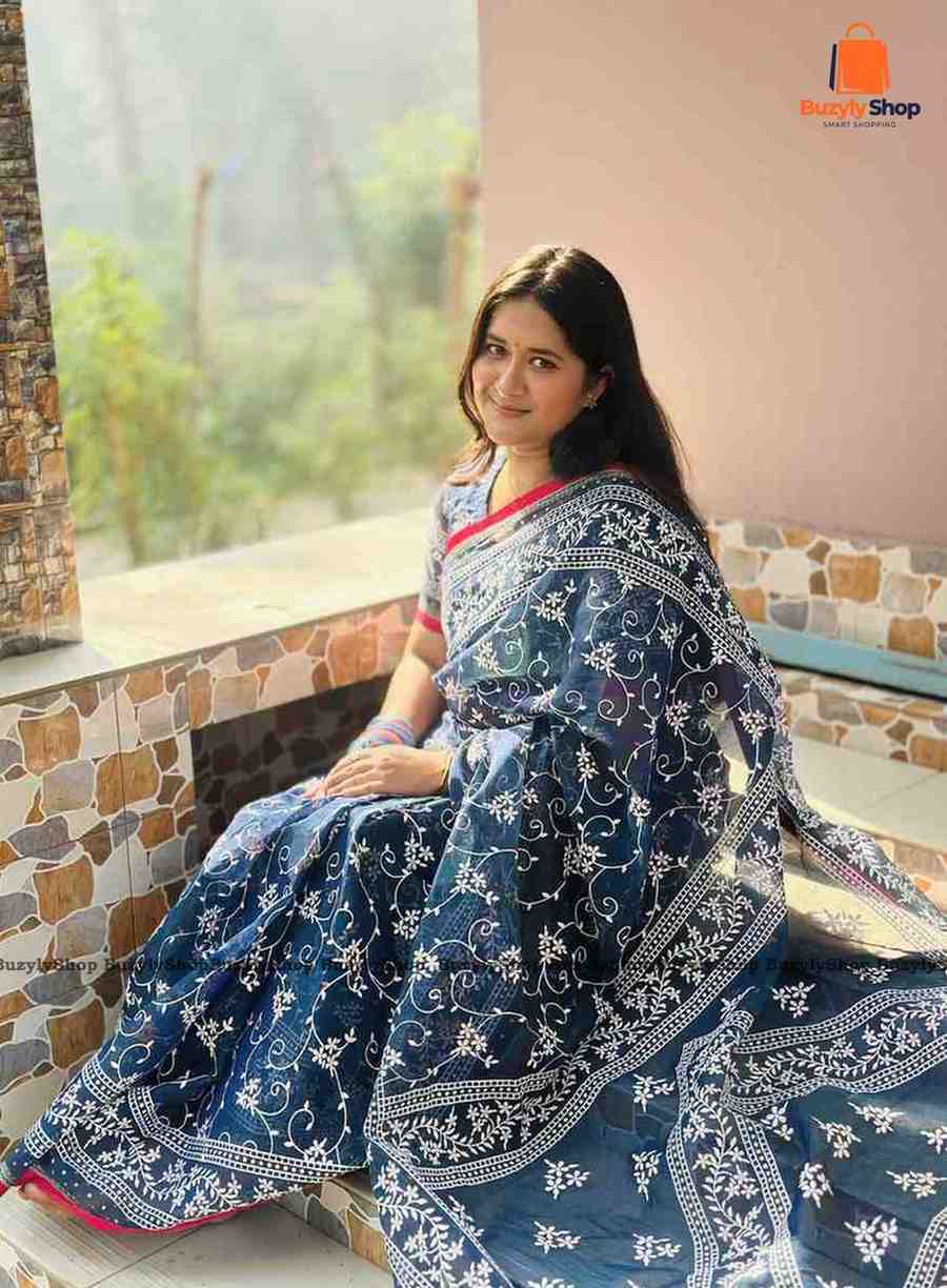 🌸 টাঙ্গাইল প্রিমিয়াম সফট সিল্ক শাড়ি- ব্লাউজ পিসসহ (Deep Blue) 🌸